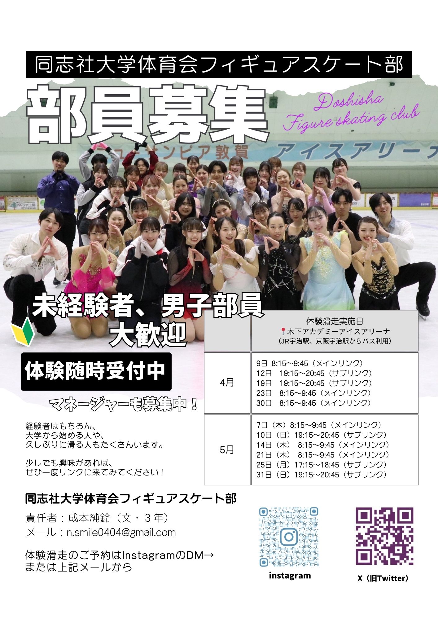 同志社大学体育会フィギュアスケート部:doshisha_fsc(a)yahoo.co.jpまで。